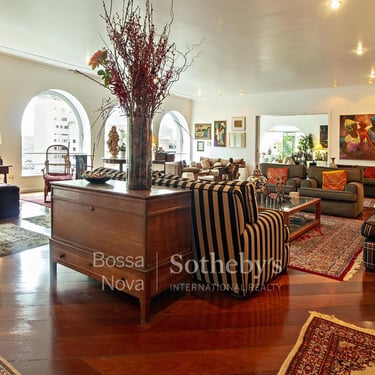 Apartamento Lindenberg, no Jardim Paulistano. Possui espaços bem distribuídos e está situado em um andar alto. A área social é composta por living para três ambientes, sala de jantar e cozinha planejada. A área íntima dispõe de quatro amplas suítes, com closet e terraços. Condomínio com seis vagas para a unidade e lazer composto por piscina, salão de festas e segurança.