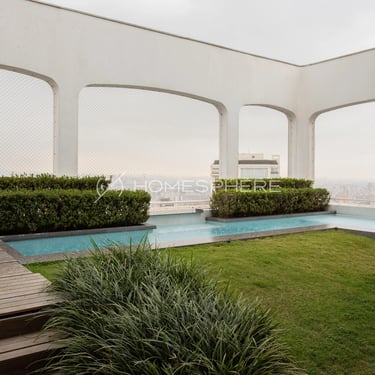Com uma área externa generosa e uma planta fluida, esta cobertura reúne o melhor dos dois mundos: o conforto de uma casa e o privilégio de uma vista panorâmica de Higienópolis — uma verdadeira casa com jardim suspenso no coração de São Paulo.